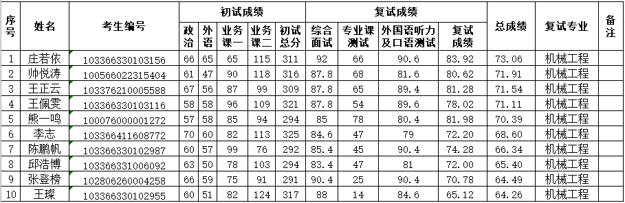 自动化与电气工程学院2026年硕士研究生调剂复试第一批拟录取名单(机械工程)