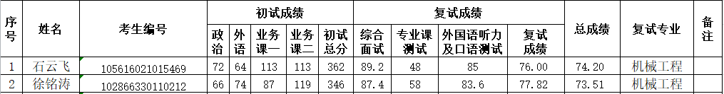 自动化与电气工程学院2026年硕士研究生调剂复试第二批拟录取名单(机械工程)