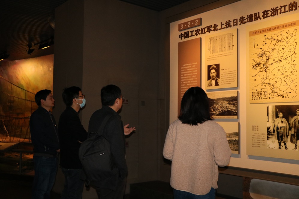 纪念馆共分南湖红船与中共一大、大革命的洪流、土地革命的风暴、钱江两岸的抗日烽火、走向解放之路等五部分。一幅幅老旧的照片图表、一件件珍贵的文物史料、一个个复原景观、一段段震撼人心的投影,全景式地再现了浙江人民在中国共产党的领导下为民族解放、国家昌盛、人民幸福进行波澜壮阔的革命斗争历史。学院党委理论学习中心组成员时而驻足观看,时而侧耳交流,深深被我党先辈们心系人民幸福和民族复兴,不畏艰难,顽强拼搏的革命精神所感动。