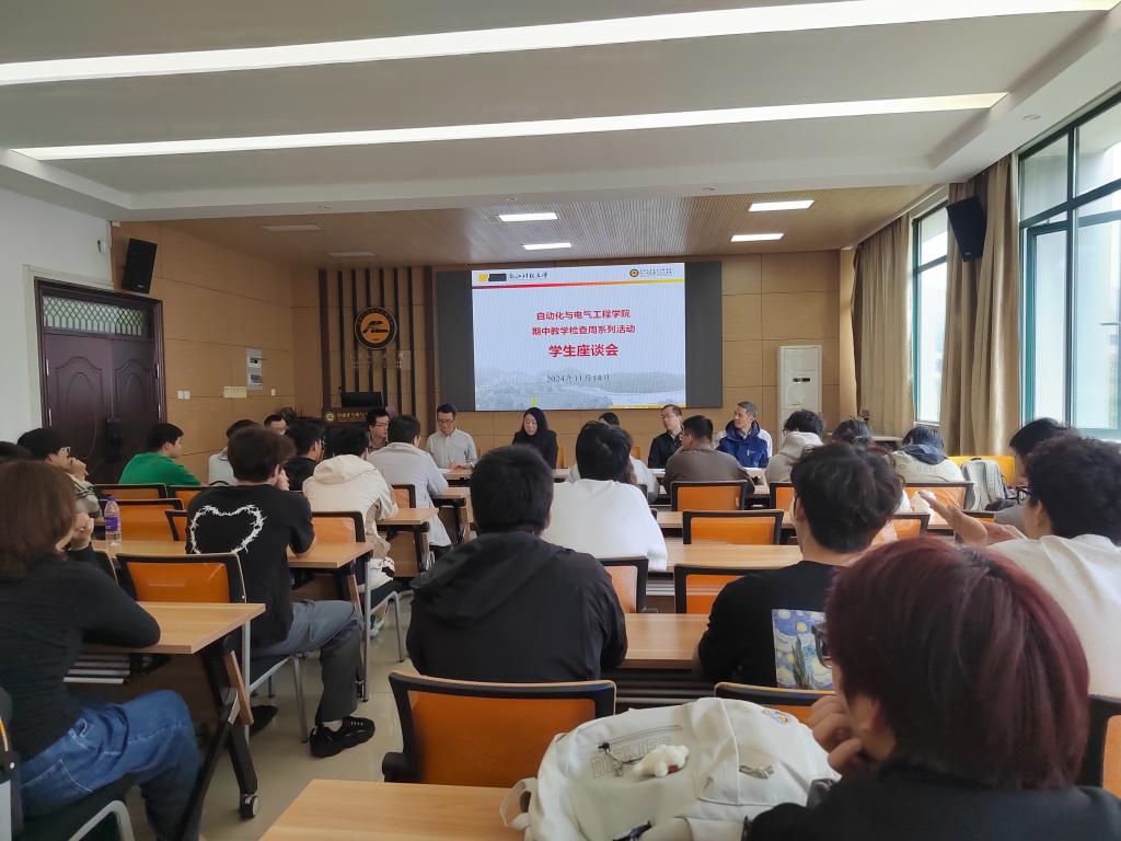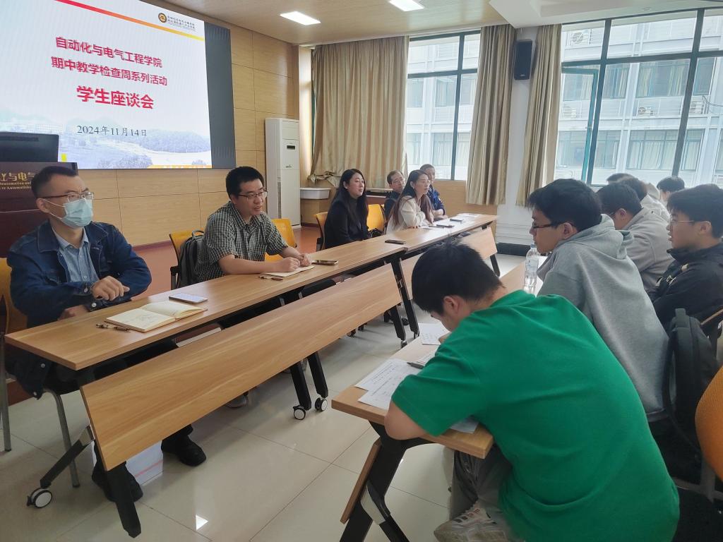 11月14日,自动化与电气工程学院在C1-437召开2024-2025-1学期期中学生座谈会,此次座谈会旨在增进师生间的沟通,收集学生对教学、管理等方面的意见和建议,以便及时改进和提升教学质量。学院教学院长费正顺、党委副书记陈泷,各系部负责人及学生代表参加了会议,会议由副院长费正顺主持。