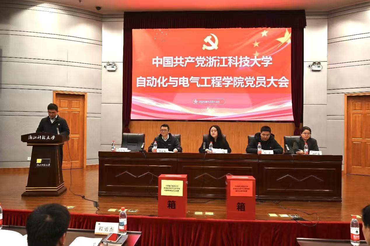12月13日上午,中国共产党浙江科技大学自动化与电气工程学院党员大会在图西报告厅胜利召开。学院党委书记王杨同志代表上一届党委作工作报告。大会由学院党委副书记石大力同志主持,学校党委委派组织部程勇杰同志到会指导。