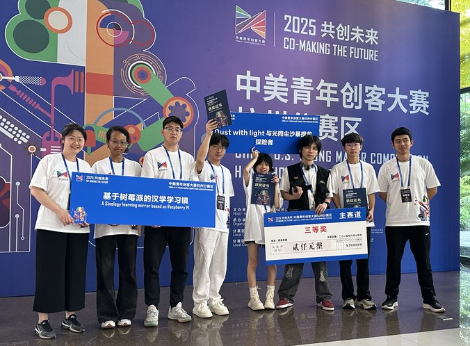 近日,在中美青年创客大赛中,本校成绩斐然,荣获五个奖项,分别为国赛优胜奖1项、分赛区三等奖2项、分赛区优胜奖2项,展现出卓越的创新能力与实践水平,取得了历年最好成绩。 杭州分赛区亮点成果在杭州分赛区,我校两支参赛队伍脱颖而出。1. 蔡智鑫、王茹逸团队的作品“Dust with light 与光同尘沙暴搜救维生服” 凭借先进技术方案引人注目,获杭州分赛区三等奖。“Dust with light 与光同尘沙暴搜救维生服”使用的主要技术方...