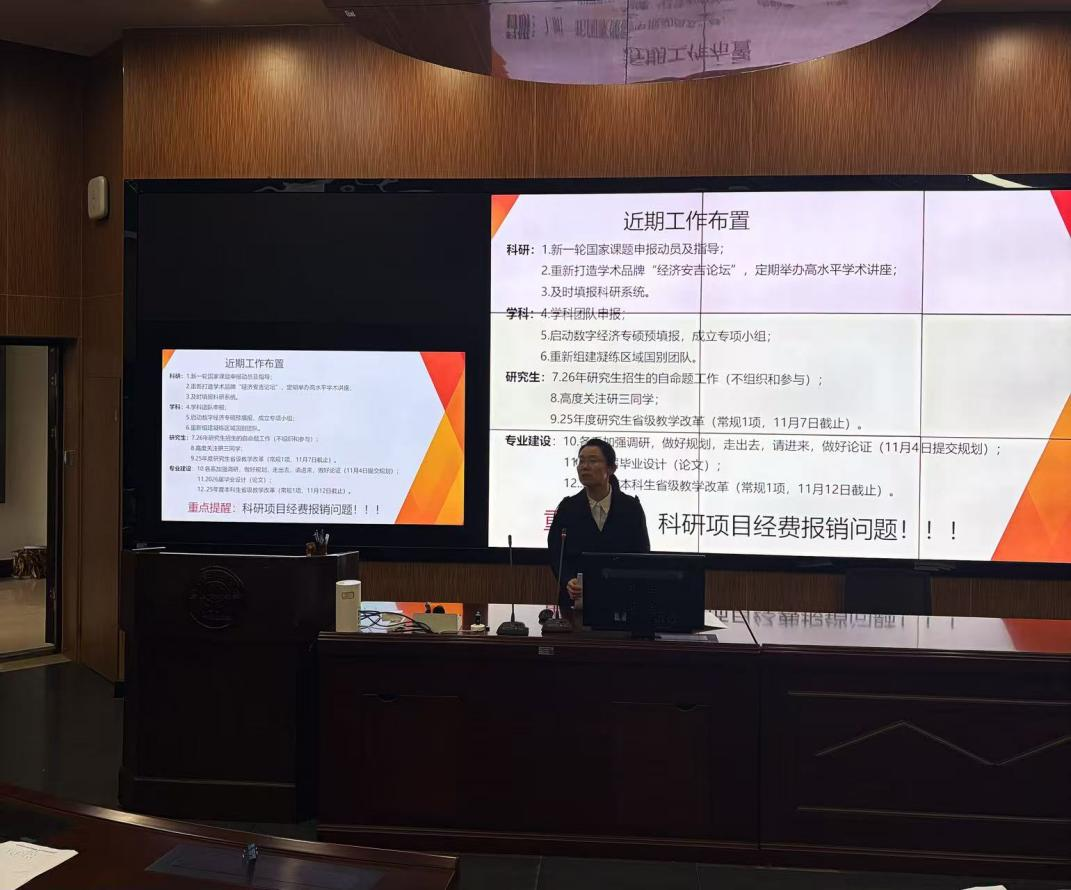 10月30日,经济学院在B4-102召开了全院教职工大会,会议由学院党委书记刘发明主持,学院领导班子及全体教职工参加会议。