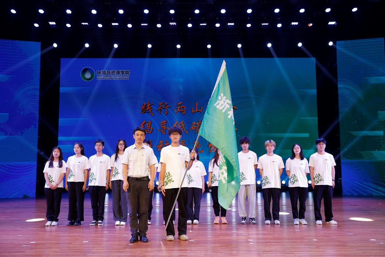 会上,校团委负责人为环资学院践行“两山”理念“零碳青年”暑期社会实践团队授旗。