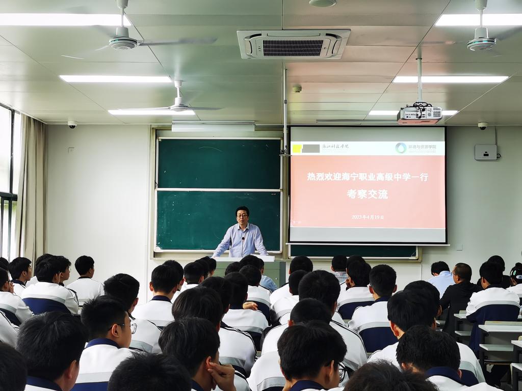 4月19日上午,海宁职业高级中学89位师生来环资学院交流访问,我院党政班子、系部负责人、辅导员及学生代表参加座谈会。会议由学工办主任程勇杰主持。