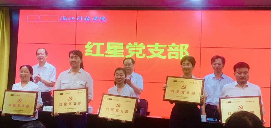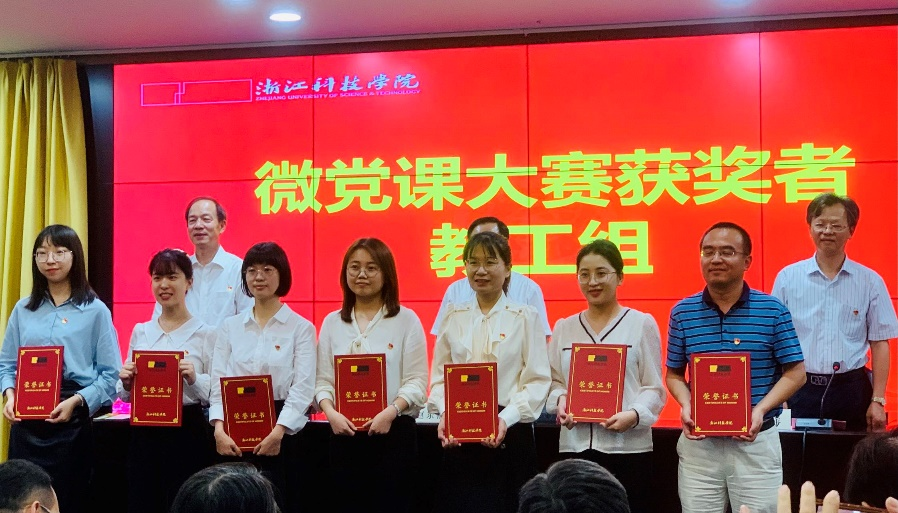 环境与资源学院党总支再获校“红旗党组织”;环资学院轻化系教师党支部获“红星党支部”;李莹老师“白+黑”版的双碳故事获校第二届微型党课大赛教工组二等奖,表彰大会上,校领导为获奖单位和老师颁发了证书。