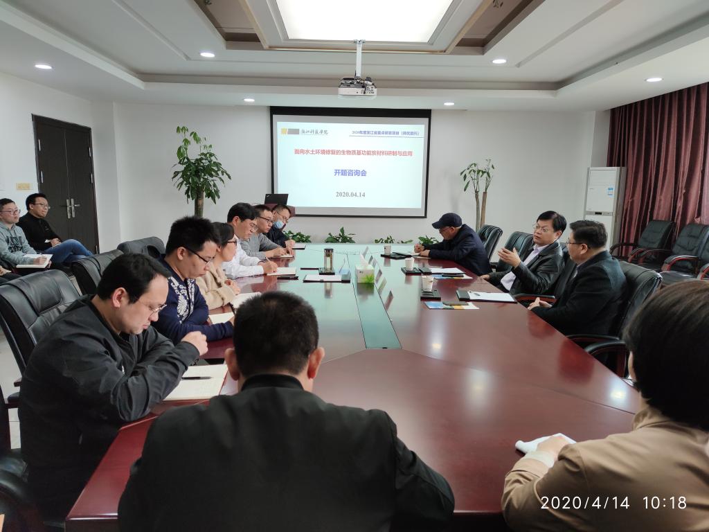 校长赵东福教授代表学校党委、行政对朱院士一行百忙之中莅临我校指导表示热烈欢迎和衷心感谢,并简要介绍了我校发展历程、学科特色和办学定位。朱院士高度赞同我校国际化应用性办学定位。之后,研究院院长单胜道教授结合我省首期卡脖子项目“面向水土环境修复的生物质基功能炭材料制备与应用”启动工作,介绍我院生物质炭研究现状和今后研究打算,重点针对浙江省面临的水土环境现实问题,开展生物质炭盐碱地改良、酸性土壤重金属污染修复、农田退水污染修复等应用研究工作,并通过建设一批试验基地,长期跟踪研究,进一步探明生物质炭改良修复土壤、水体机理,创新技术,制定应用规范,助推生物质炭产业化发展。与会专家高度肯定了我院生物质炭研究工作,认为我院研究特色显明,针对性强,同时就进一步优化研究方案,提出了宝贵的意见建议。
