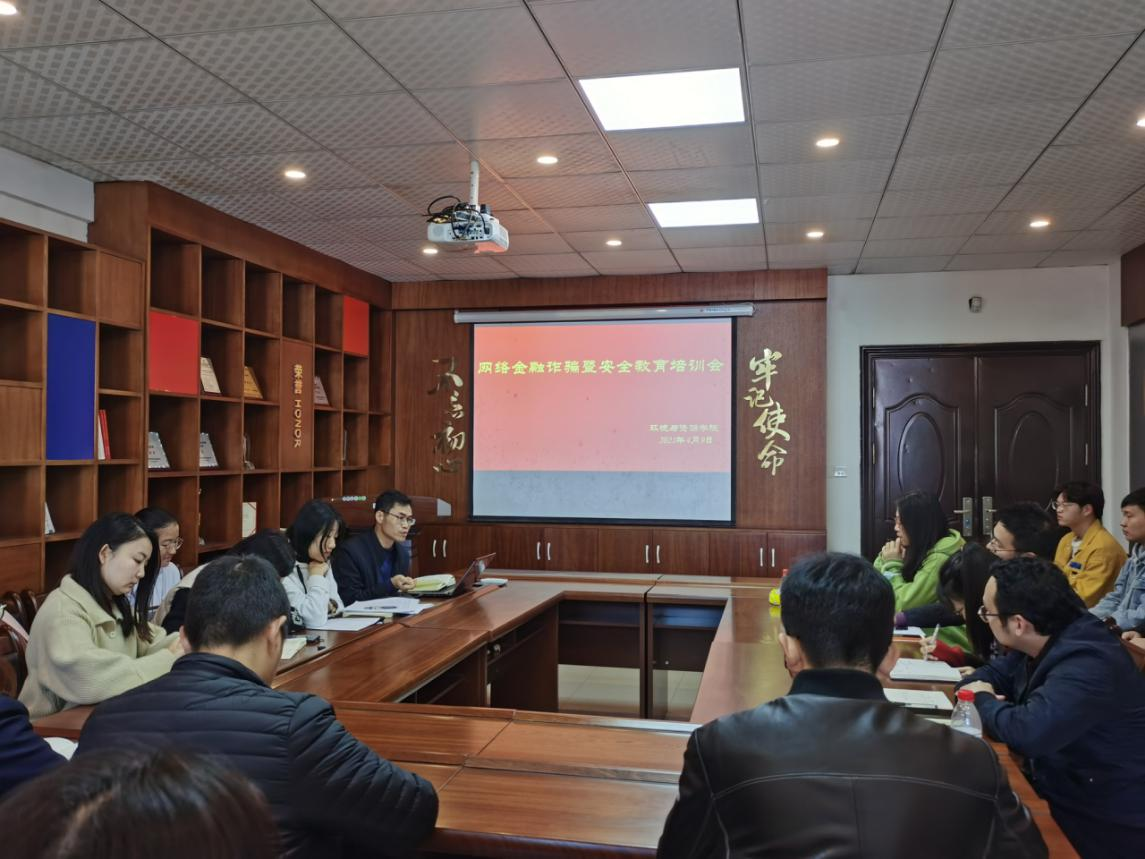 2021年4月9日上午,按照4月8日学校组织召开的网络金融诈骗暨安全教育培训会的部署要求,环资学院组织召开了防网络金融诈骗暨安全教育培训会,会议由环资学院副院长张学金老师主持,学院辅导员、系主任、班主任、各班班长、团支书参加本次培训会。