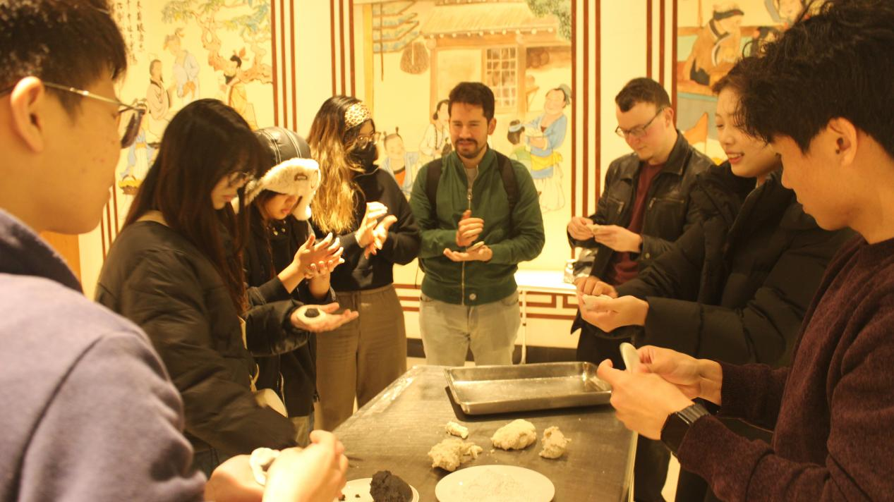 At the event venue, long tables were neatly arranged, with glutinous rice flour, black sesame filling, colored glutinous rice paper and other materials readily available. Chinese students taught international students how to make glutinous rice balls step by step, from rolling dough into balls to wrapping fillings, with great patience and meticulousness. Soon, bowls of steaming glutinous rice balls were served. Everyone sat around to taste them, and the sweet and chewy texture embodied the beautiful implication of "reunion".