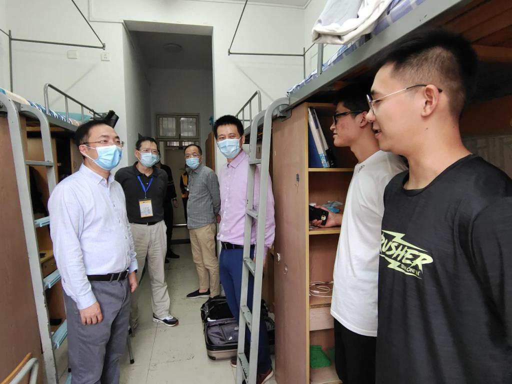 报到当天,副校长万健在相关职能部门负责人的陪同下来到西和公寓12幢的迎新现场指导工作并走访新生寝室。他们首先向现场迎新工作人员询问了今年研究生新生报到情况,嘱咐相关部门、研究生院和各二级学院一定要严格落实疫情防控等相关要求,确保迎新工作的顺利完成。接着,万校长来到学生寝室看望,并与前来报到的新生交流。他仔细查看了新生住宿条件,针对不完善之处要求后勤整改落实到位。在学生寝室,万校长亲切询问了新生的家庭情况、学习经历和饮食习惯,欢迎他们加入“浙科大树”。他希望同学们在研究生阶段明确自己的目标,在自己的专业领域更上一层楼。