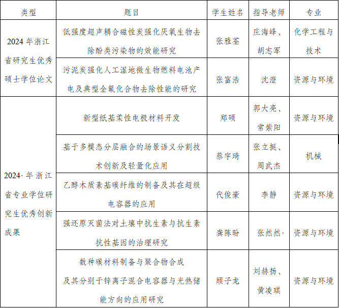 附件:2024年浙江省研究生优秀硕士学位论文、2024年浙江省专业学位研究生优秀创新成果名单我校获评名单