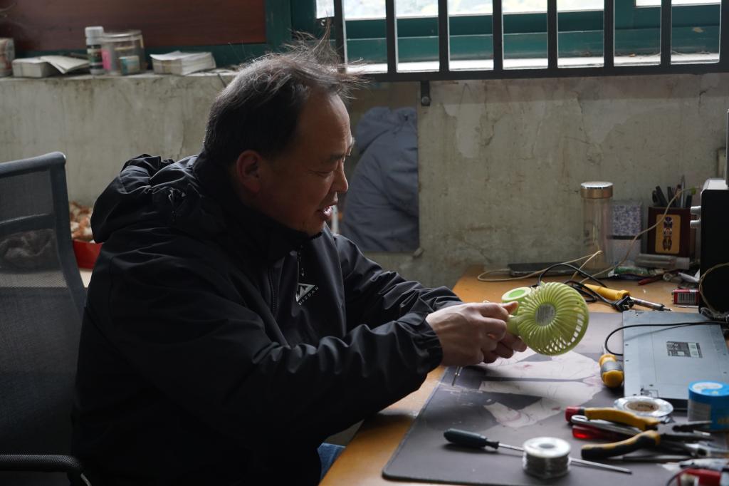 能源保障与工程维修部的师傅们工作台上,螺丝刀、万用表、电烙铁一字排开。维修师傅接过一件件“罢工”的小家电——不亮的台灯、不转动的风扇。拆开外壳、检测线路、更换零件,不一会儿,风扇重新转动,台灯再次亮起。同学们边看边听师傅讲解安全用电知识,维修间里格外热闹。