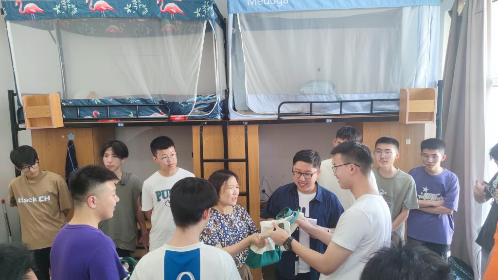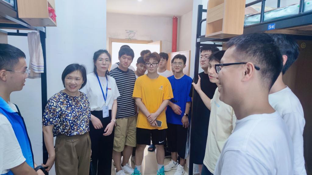 9月2日,理学院党委书记张掬婴、 党委副书记黄奕筱、学工办主任蔡瑞康、安吉辅导员琚常鑫、全体新生班主任和助理班主任等一同走访学生寝室。走访期间,张书记向学生和家长介绍了学院基本情况和近年来典型的育人成果案例。张书记提到,每年学院都有一名学生获得学校高荣誉“卓越学子”称号,并有多位优秀学长学姐拿到了国家奖学金,对新生寄予殷切希望,祝愿每位新生都能在今后的学习生活中积极奋进,梦想成真。新同学们对此非常感兴趣,表示会努力学习。黄书记提醒新生新学期要抓紧进入学习状态,学校真山真水环境优美,是一个学习的好地方,要找到适合自己的学习方法。学院了解到当天有新生过生日,特意准备了学习生活礼包,希望新生能够在新的环境秉承“明理笃学,慎修博用”的院训,保持对科学的好奇心,不断探索,攻坚克难,通过四年的积累和沉淀,成为更好的自己。