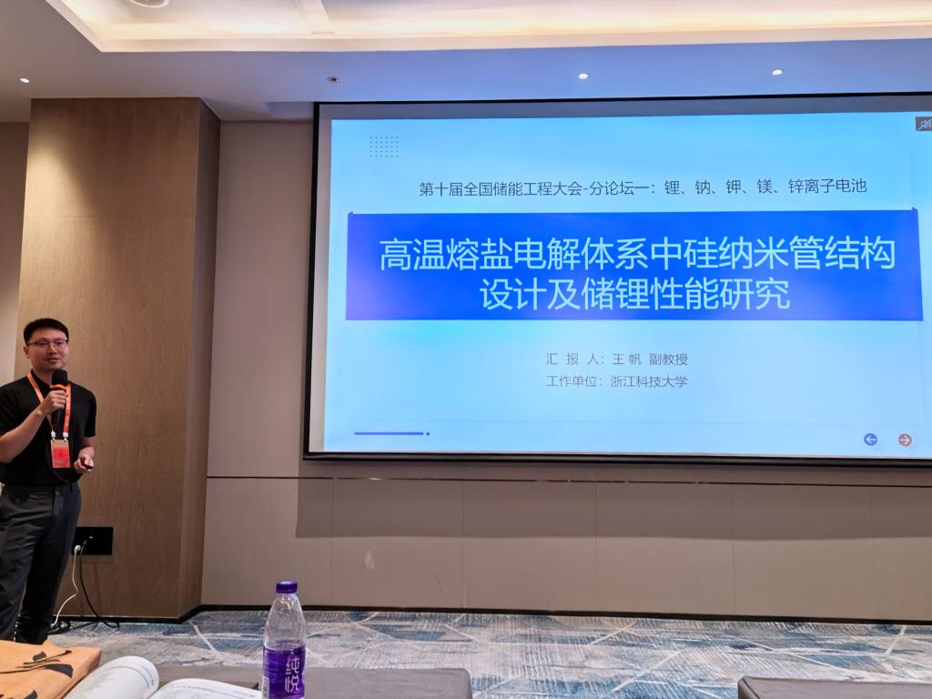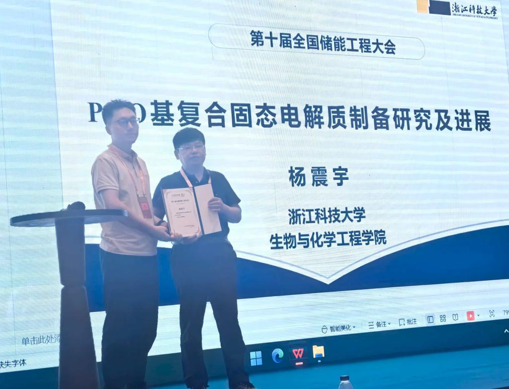 浙科大生化学院对此次大会高度重视,由杨震宇教授带队,王帆副教授、徐喜连博士、张海博士等教师代表组成参会团队,深度参与了大会的各项学术活动。其中,杨震宇教授不仅主持了“固态电池”分会场,还作了题为《有机无机复合固态电解质的研究与进展》的邀请报告。报告系统梳理了该领域的最新研究动态,其团队在复合电解质界面调控方面的创新探索,为解决下一代高安全、高能量密度电池的关键技术瓶颈提供了全新思路,引发了与会专家的热烈讨论和广泛关注。