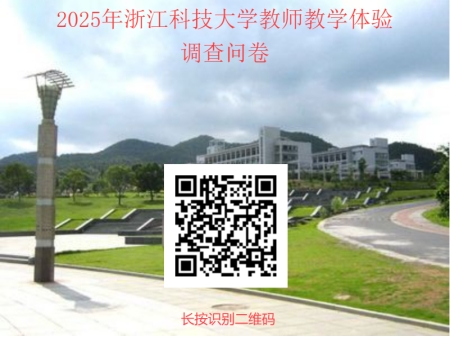 你们好!为了解教师在师德师风、教学能力、教学投入等方面的情况,以及教师对本校教师发展、资源与服务支持、质保体系等方面的评价与反馈,我们设计了浙江科技大学教师教学体验调查问卷旨在从教师的角度量化考察我校本科人才培养目标定位、资源条件、培养过程、学生发展、教学成效等情况,恳请您务必认真填写。衷心感谢的支持与配合