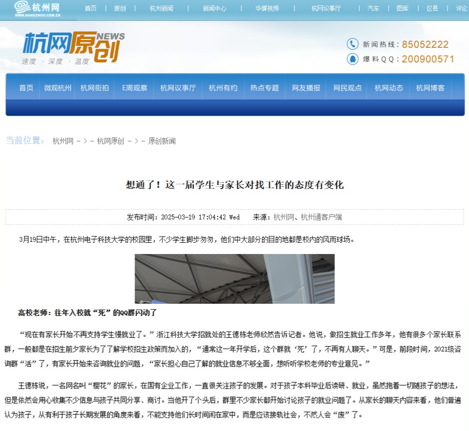 杭州网:想通了!这一届学生与家长对找工作的态度有变化