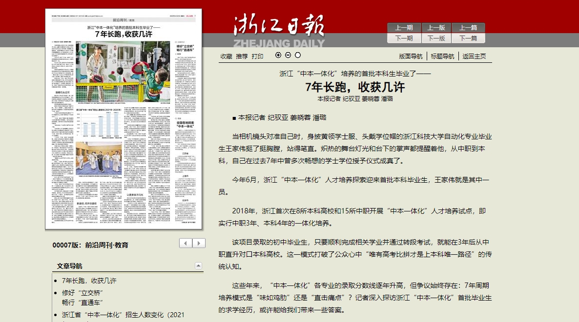 杭州网:浙江“中本一体化”培养的首批本科生毕业了:7年长跑,收获几许