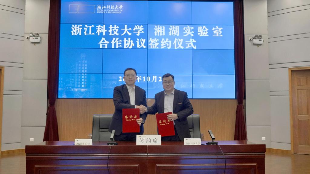 大会举行签约仪式,在浙江大学发展委员会副主席、党委原常务副书记陈子辰,赵东福,陈建孟见证下,侯北平与浙江大学研究生院院长夏群科分别代表双方签署《浙江大学 浙江科技大学研究生教育与学科建设帮扶协议》。侯北平与湘湖实验室常务副主任、省农科院党委副书记杨华签署《浙江科技大学与湘湖实验室合作协议》。