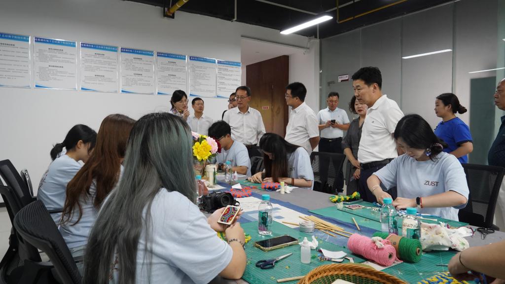 在利川市汪营镇齐跃桥村,张日向一行走进农产品展销平台电商直播间,他详细询问学生团队开发的营销系统如何精准触达消费者;在富硒产品加工现场,他驻足聆听生化学院团队运用现代分析技术优化工艺、提升品质的攻关细节;面对艺术学院师生设计的西兰卡普文创系列,他充分肯定其将非遗文化转化为市场价值的创新路径。