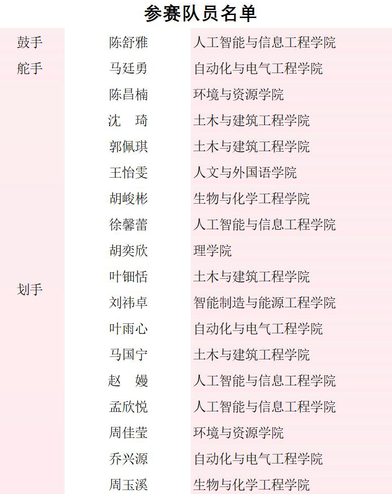 本次赛事由中国学生体育联合会、汨罗市人民政府共同主办,设甲组(普通组)、乙组(高职高专组)、丙组(高水平A组)、丙组(高水平B组)四个组别,每个组别均设男子、女子、混合12人龙舟100米、200米、500米直道竞速项目,来自全国19个省(自治区、直辖市)的47所高校的90支队伍、1000多名选手本届赛事本校水上运动队的此次夺冠,不仅彰显了在高校水上运动项目上的强劲实力,也是学校“山水体育”特色文化建设成果的生动诠释。(教务处 体育部)