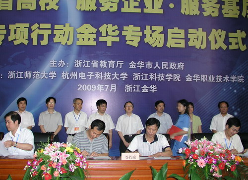 7月3日,浙江省教育厅和金华市人民政府共同主办的浙江省高校“服务企业、服务基层”专项行动金华专场活动举行。我校和浙江师范大学、杭州电子科技大学、金华职业技术学院等高校承办了此次活动。省委教育工委、省教育厅厅长刘希平,我校副校长吕进等承办高校领导以及金华市政府领导出席活动启动仪式。