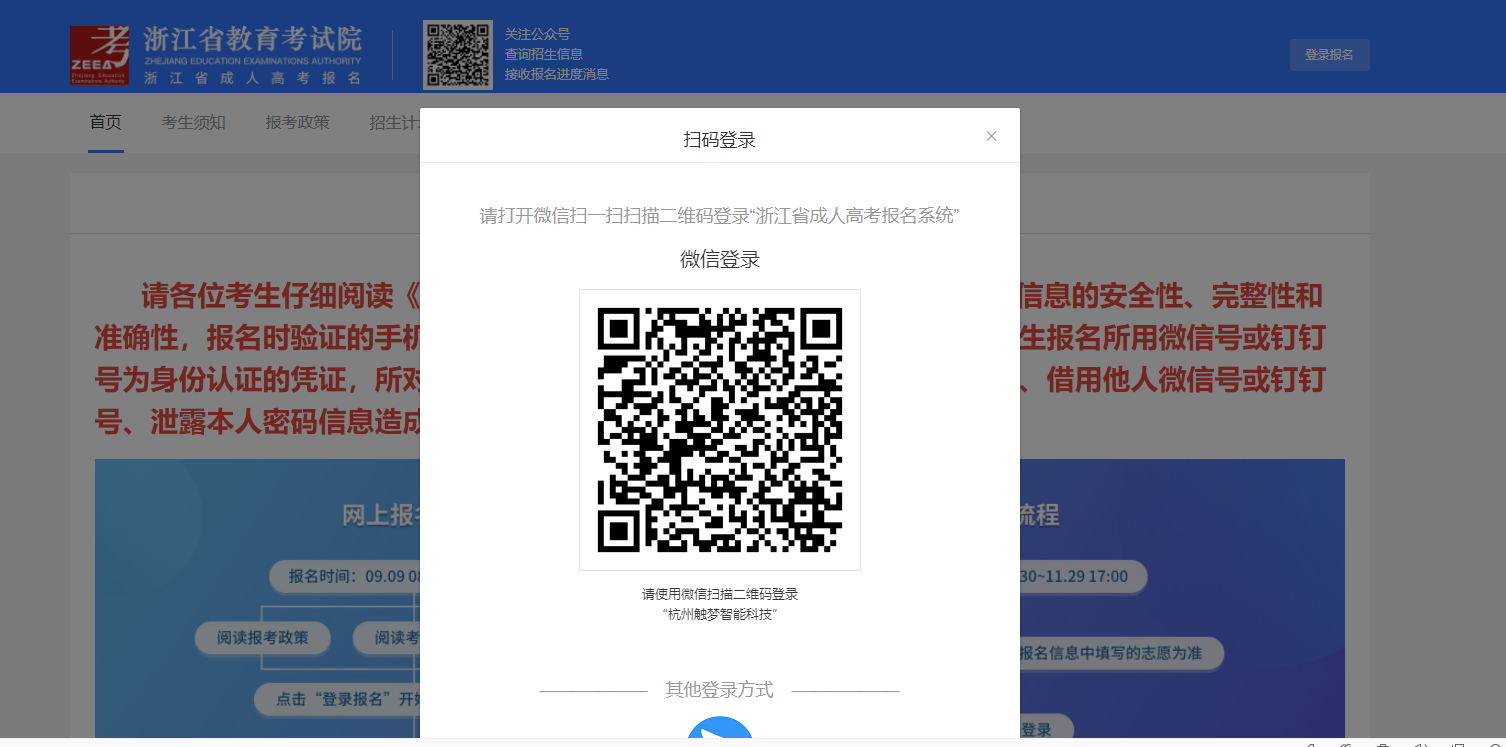 温馨提示:为保证信息的安全性、完整性和准确性,报名时验证的手机号是接收短信通知的重要渠道,请认真维护!考生报名所用微信号或钉钉号为身份认证的凭证,所对应的密码严禁向他人透露,切勿绑定他人手机号报名、借用他人微信号或钉钉号或泄露本人密码信息。