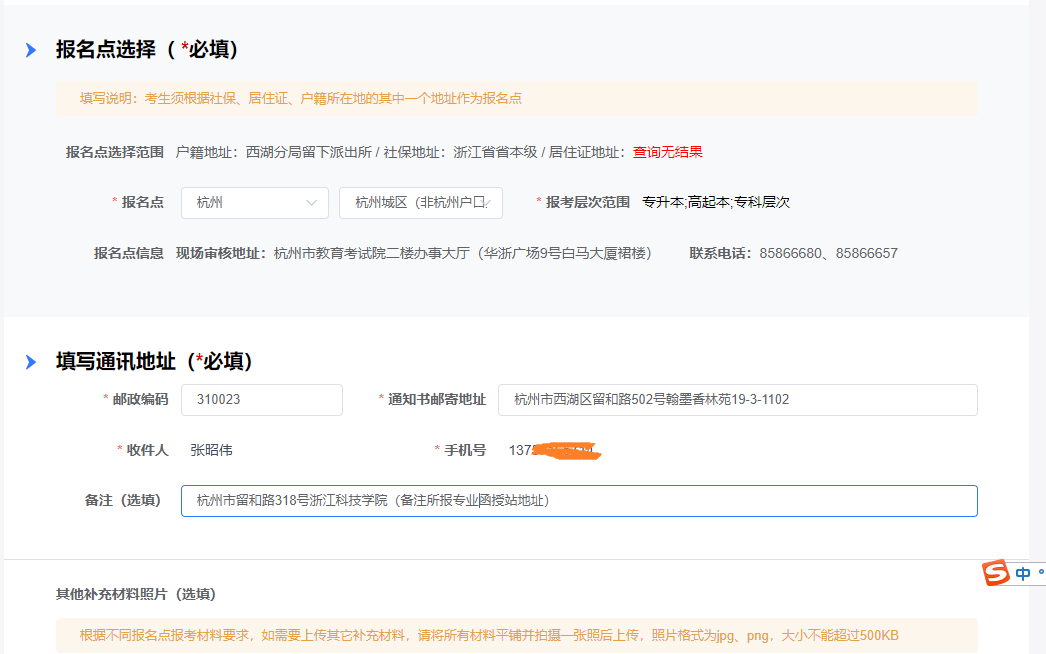 (三)请考生在备注(选填)里填写所选函授站的正确地址,如浙江科技学院本部函授站地址:杭州市留和路318号浙江科技学院。
