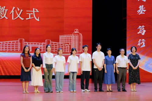 陈平、童芸芸、金辉、黄扬飞、王倩楠为新生代表佩戴校徽。507名来自全国各地13个民族的新同学与70名来自世界各地的本硕留学生齐聚于此,即将在学院开启逐梦新程。