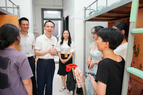 当天,校长陈建孟、校党委副书记张日向在学工部部长杨志祥、后勤服务中心主任王登科、学院执行院长童芸芸、学院党委副书记(主持工作)金辉等领导、辅导员的陪同下,深入2025级本科生宿舍,亲切看望刚刚入校的新生。校领导细致询问同学们的家乡情况、到校适应状况及对学校的初步印象,并认真听取家长们的意见与期待。他们勉励新生要尽快适应新环境,与室友和睦相处,学会独立生活,积极融入集体,在奋斗中书写无悔青春。