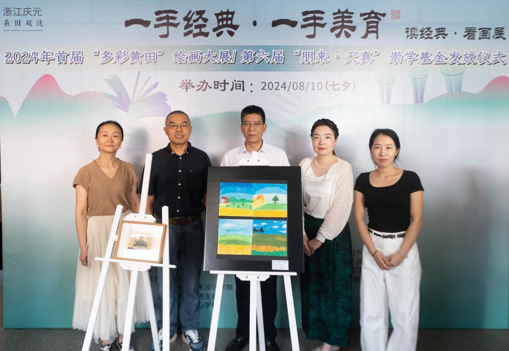 此次画展在浙江科技大学统战部的支持下,由浙江科技大学艺术学院、民进浙江科技大学支部与黄田镇中心学校联合发起,旨在通过绘画的表现形式,描绘家乡、赞美家乡、热爱家乡,让艺术赋能乡村文化发展。在“朋来·天真”崇学基金发放仪式上,民进浙江科技大学向丽水市图书馆捐赠双沈读书8周年1号藏书票。