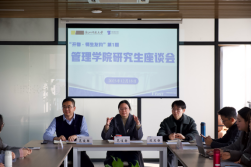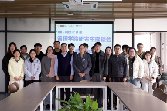 12月18日,学院于安吉科创楼举行第1期“开物·师生友约”活动。管理学院党委副书记(主持工作)范佳静、学院副院长陈思静、党委副书记范俊强及研究生各班班委、学生代表参加此次座谈。会议由范俊强主持。