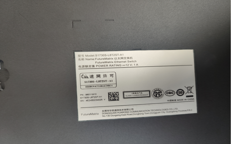 光交换机型号:S1730S-L8T2ST-A1(购物软件可购买)