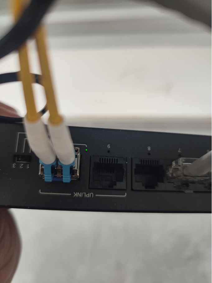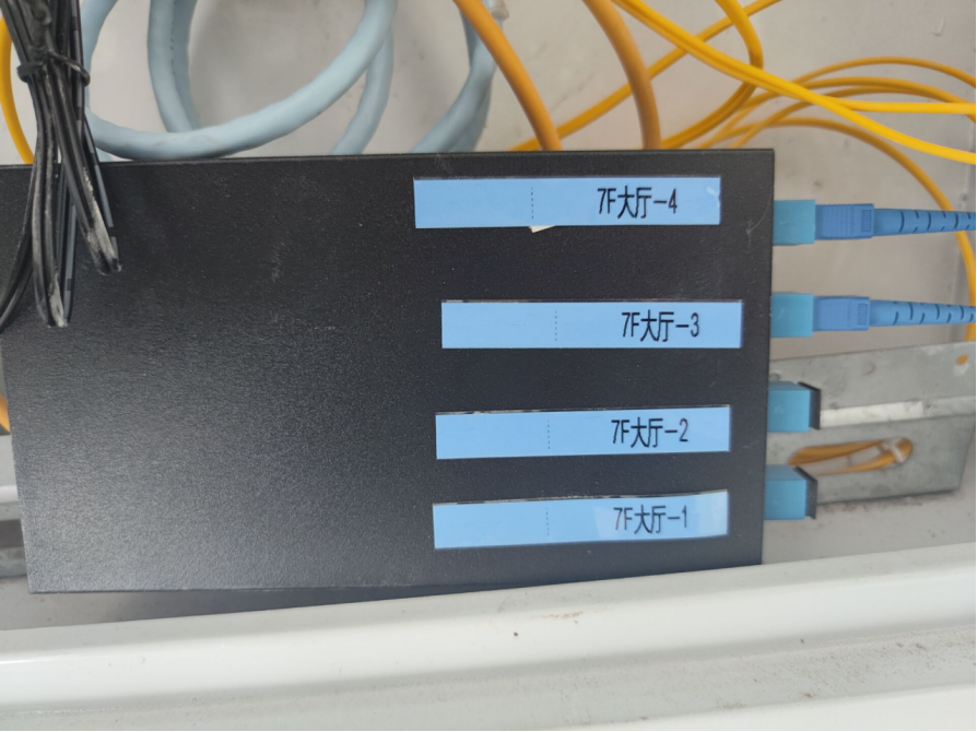 尾纤跳线一端连接光纤盒1、2口或3、4口,另外一端连接至已插好光模块的交换机上,看到端口指示灯亮起即代表连接成功(光模块需插紧,若松动也会导致;连接故障)