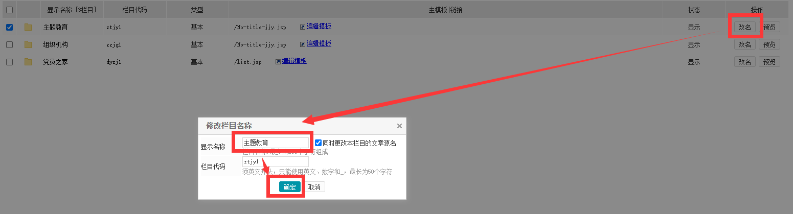 1.修改栏目名称:网站建设--栏目--该栏目的父栏目,在右侧找到该栏目改名,然后保存,然后左下角发布网站即可。