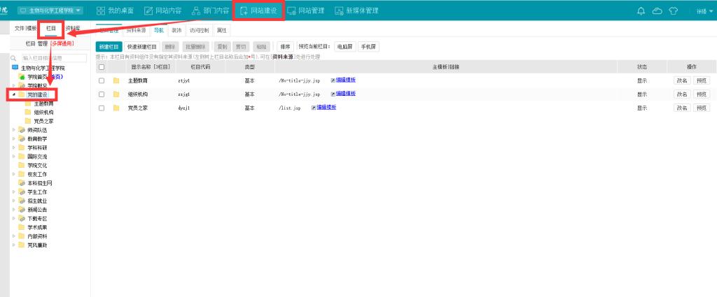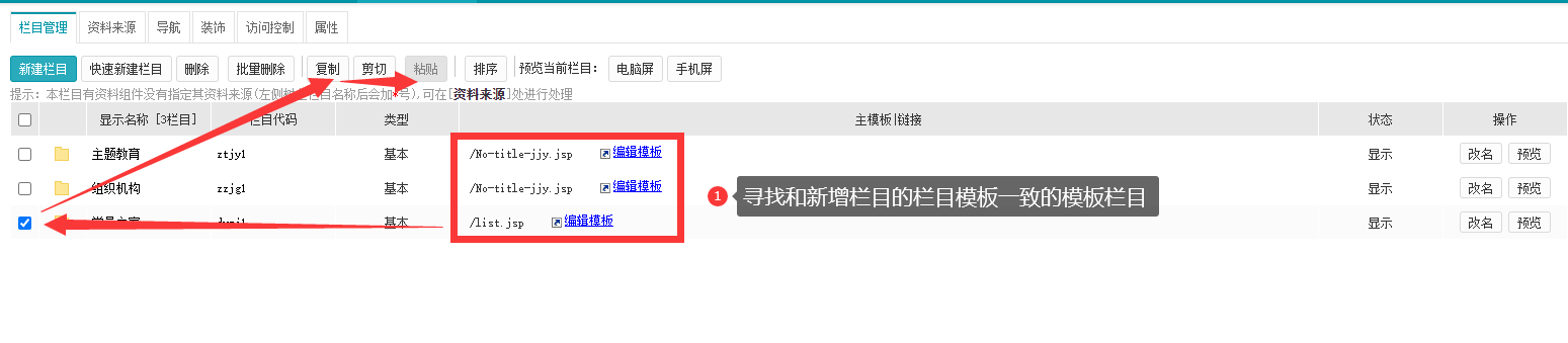 2.新增栏目:网站建设--栏目--该栏目的父栏目,在右侧找到和新增栏目的栏目模板一样的栏目,然后选择后复制并黏贴。然后把新生成的栏目如上修改栏目名称即可,然后左下角发布网站即可。