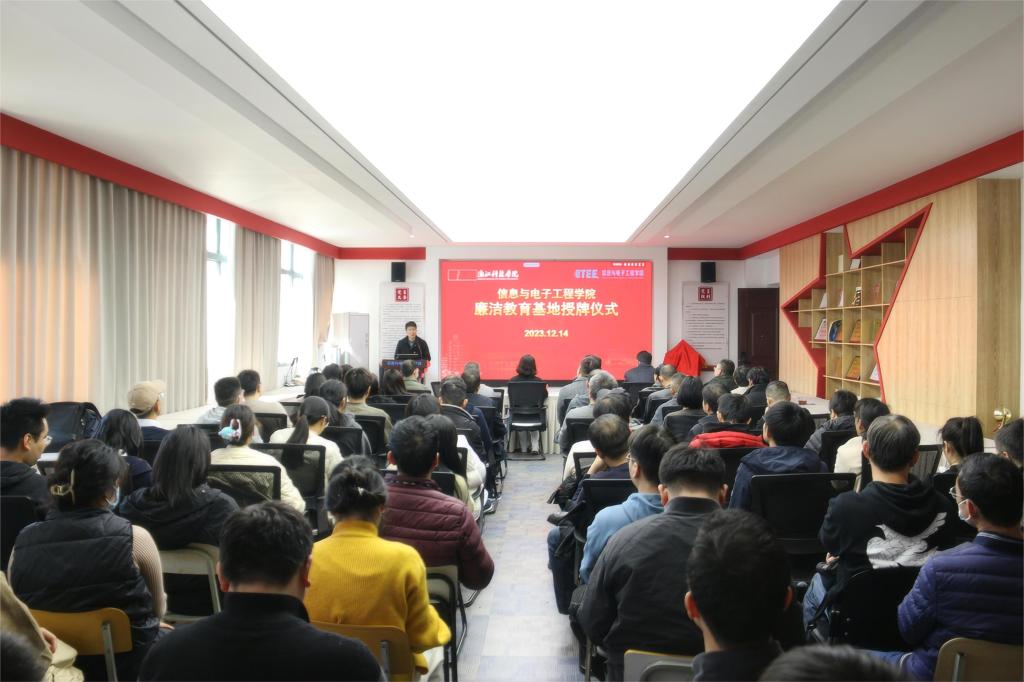 12月14日,信息与电子工程学院举行廉洁教育基地授牌仪式。校党委副书记冯军、校纪委书记陆爱华出席授牌。校纪检监察室领导、学院党政领导班子及学院全体教职工参加授牌仪式。