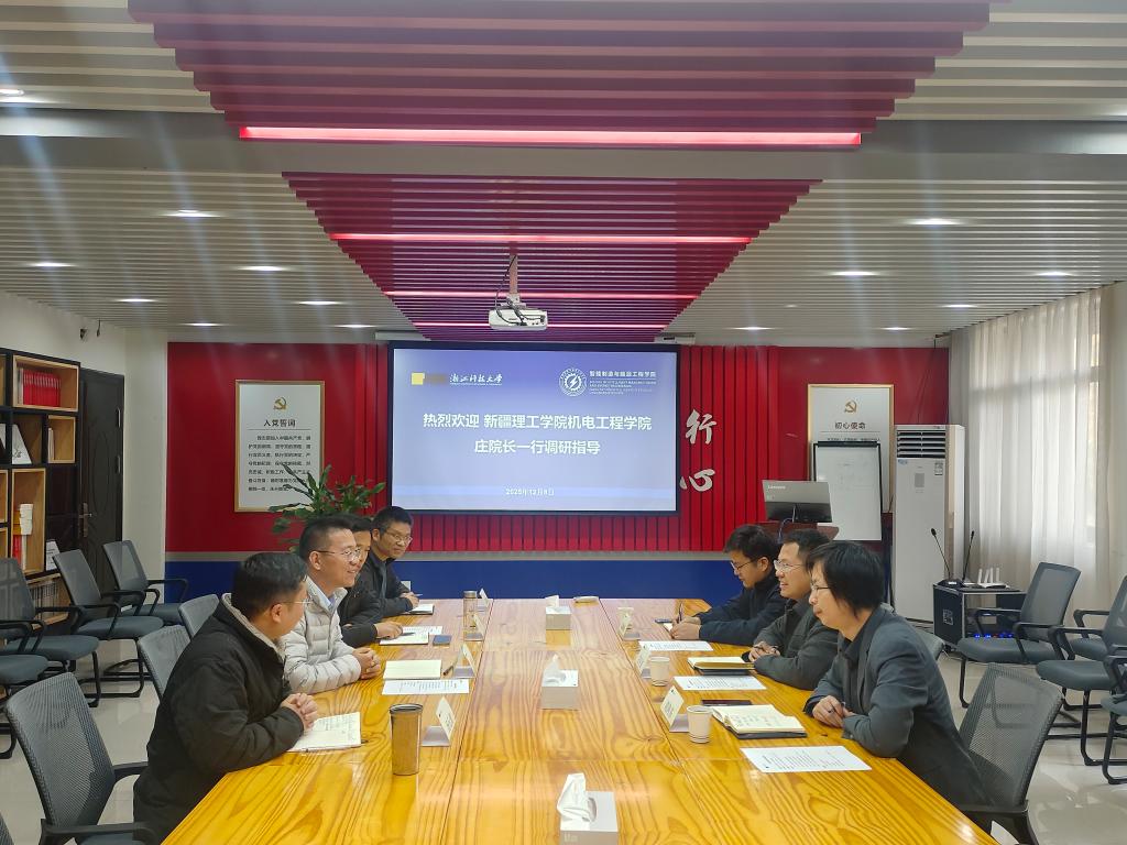 12月8日,新疆理工学院机电工程学院院长庄可佳、副院长刘向东、教师陈棒棒等一行3人来我院调研指导,学院院长李国能、党委副书记王学宏、副院长汤元君、机电工程系主任吴瑞明等参加座谈交流。