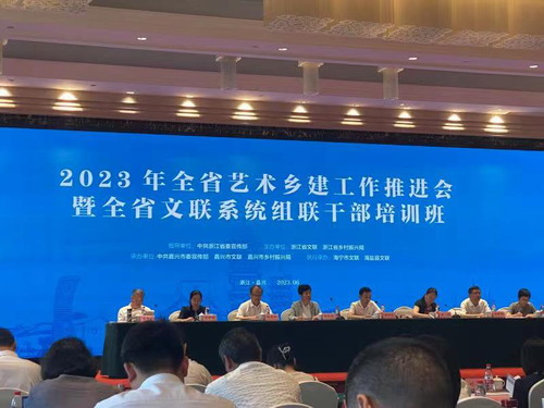 6月29日下午,2023年全省艺术乡建工作推进会暨全省文联系统组联干部培训班在嘉兴举行。省委宣传部副部长范庆瑜,省文联党组书记、副主席、书记处常务书记杨守卫,省农业农村厅二级巡视员朱勇军,省文联党组成员、书记处书记童颖骏,省文联党组成员、人事处处长张赛飞,嘉兴市人大常委会副主任沈建华,海宁市委书记曹国良,和各市委宣传部、市乡村振兴局的负责人,省级文艺家协会、省文联直属单位负责人,各市、县(市、区)文联相关负责人参加会议。省文联党组成员、书记处书记曹鸿主持会议。