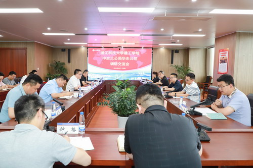 中交三公局华东公司党委副书记、纪委书记、工会主席杨振强,党委委员、总工程师马斌,党委委员、安全总监孟国祥;浙江科技大学建工学院党委副书记、纪委书记尤永杰,教授夏建中,组织员胡旻晖和教师夏永强参加此次座谈。