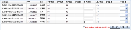 特别提醒:所有安排了补考的课程都必须录入成绩并提交。如学生缺考,须备注”补考缺考”后提交。