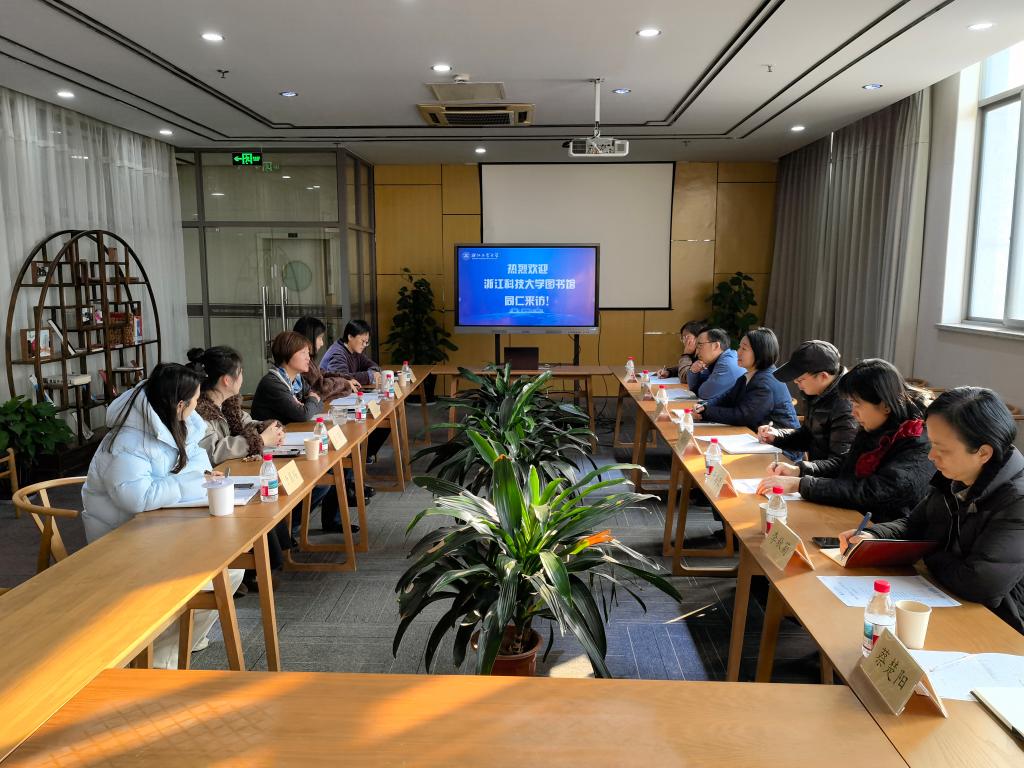 近日,图书馆副馆长钟琴带队赴浙江工业大学图书馆屏峰校区进行资源建设专项调研,资源建设部全体馆员参加。