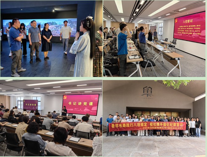 为扎实推动深入贯彻中央八项规定精神学习教育,持续推进校社“党建联建”,以“香邻书路践行八项规定、校社携手强化纪律意识”为主题,图书馆档案馆直属党支部和翰墨香林社区党总支于2025年5月30日上午组织全体党员、居民代表赴留下街道杨家牌楼社区文化家园、杭州市保密宣传教育实训基地及留下1129社区开展“校社联动红五月”主题党日活动暨“深入贯彻中央八项规定精神”学习教育专题会。