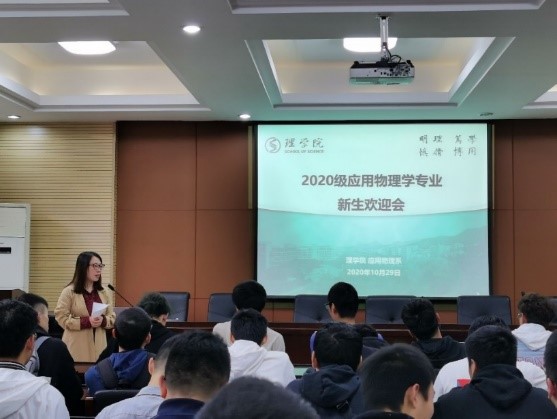 首先,孙婷婷老师做了一个简单的欢迎仪式,热烈欢迎20级新生来到小和山校区(图2)。然后,孙老师从“优秀师资团队”、“特色优势专业”、“国际交流合作”、“学业导师制”等四个方面介绍了应用物理系的基本情况和发展现状,督促同学们利用好大学四年时间学好专业课,夯实物理基础,希望每位同学都能以优异成绩顺利毕业并有一个美好的前程。