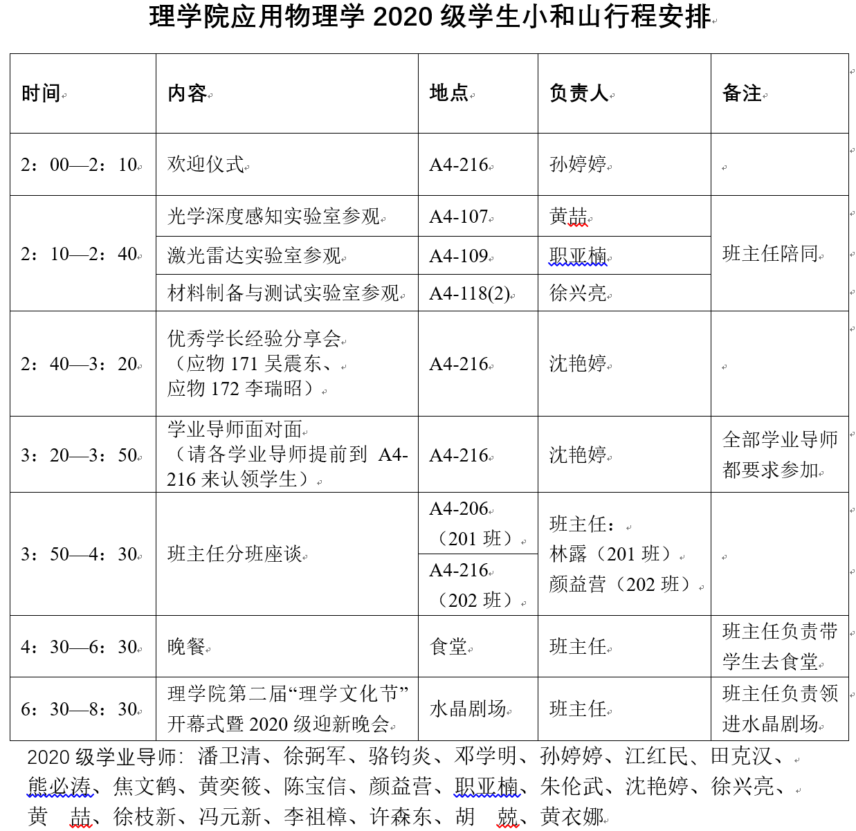 10月29日,2020级应用物理学专业本科生在学院和系的统一安排下,来到了小和山校区进行交流学习,参加了一系列活动(图1)。系主任孙婷婷老师、系副主任沈艳婷老师,两个班的班主任、部分本科生学业导师以及全体20级学生参加了此次系列活动。