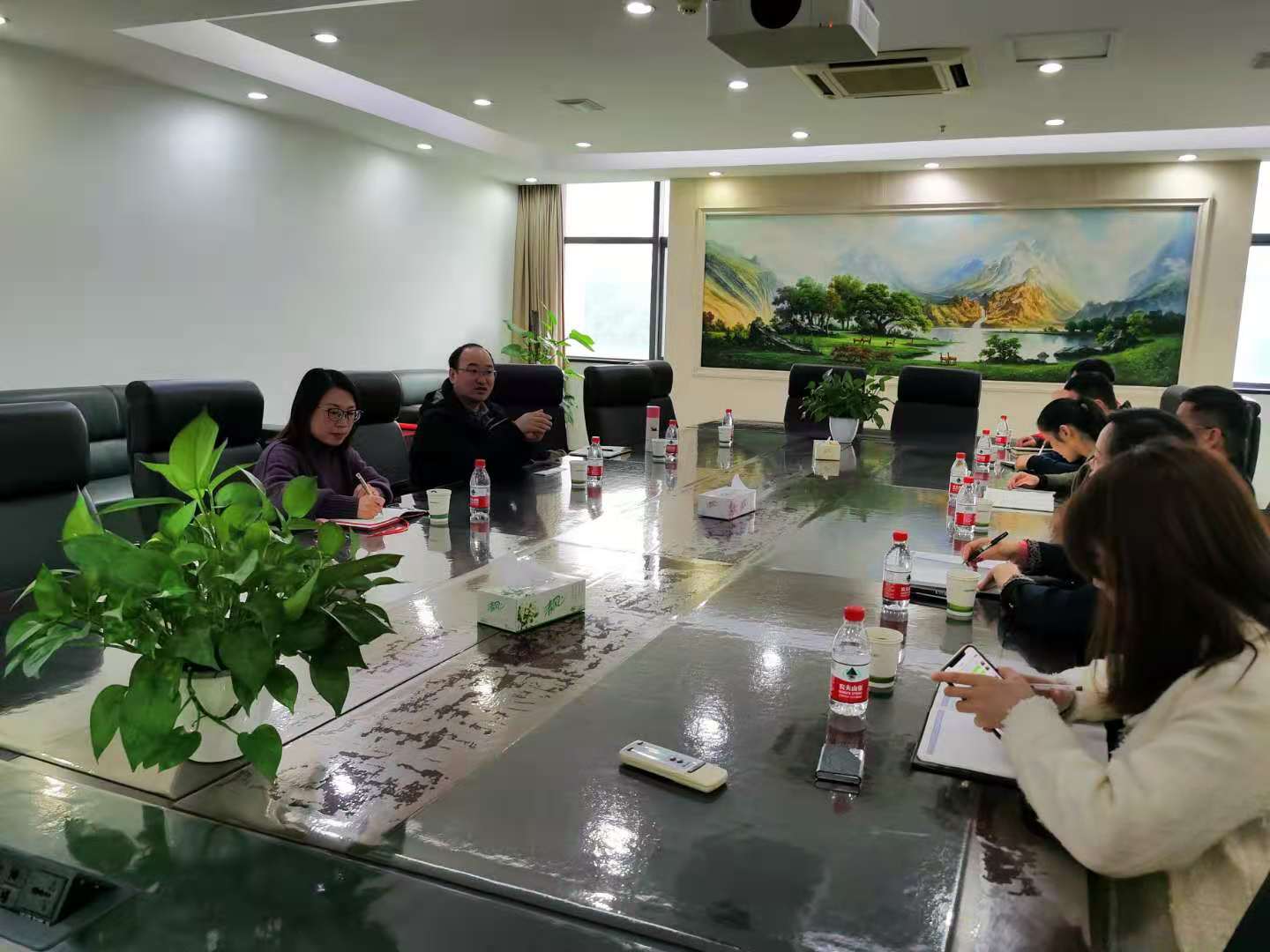 首先,潘经理简单介绍了杭州远方光电信息股份有限公司近年发展,主要集中在大检测、大数据、人工智能等三个方面,具体包括检测校准信息服务、轨道交通检测信息服务、光电检测信息服务、生物识别信息服务,以及emc测量信息服务等。潘经理表示远方光电的产业布局与我院应用物理系本科生培养非常契合,非常欢迎我院毕业生到远方光电实习就业。并希望双发能够在人才培养和实践基地建设等方面进一步深入合作。