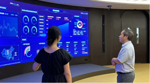 在恒生电子人员的陪同讲解下,陶祥兴参观了由恒生电子主导研发的金融智能助手光子、金融行业语言大模型LightGPT以及的智能投研平台WarrenQ。