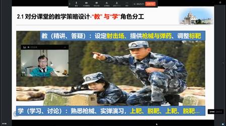 首先李岩峰副院长做题为“成果导向的对分课堂实践”的主题演讲,形象地用教打靶比喻对分课堂的教学角色分工;分析学情、教情并展示了师生对分讲故事的教学设计;提供了师生共同参与的对分考评设计策略。最后,李院长展示了学生试卷成果、学生讲故事讨论集、教学设计方案等云端具体案例。