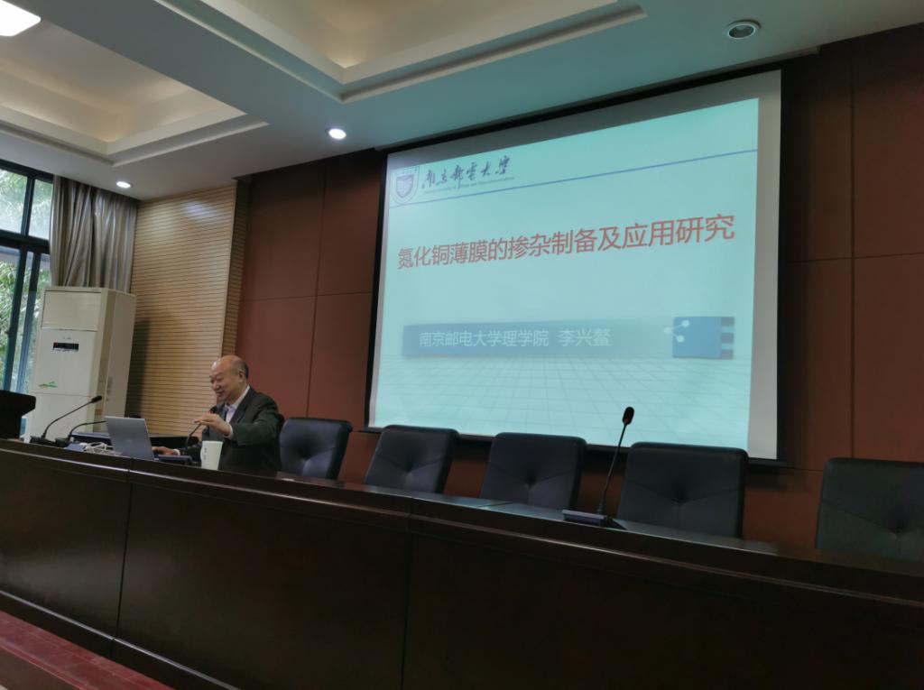 2020年10月19日上午,南京邮电大学理学院李兴鳌教授应邀做客我院物理格致论坛,作了题为“氮化铜薄膜的掺杂制备及应用研究”的精彩学术报告。报告由理学院副院长徐弼军老师主持,我院老师、研究生和本科生代表共同聆听了报告。