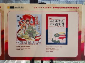 此次展览由马院、人武部主办,军事理论与国家安全教育教研室承办。以“喜迎二十大 共筑强军梦”为主题,在安吉校区行政楼一楼大厅集中展示军事理论与国家安全教育教学作品。同学们用海报、手绘、墙报、短文、诗歌、手工制作等形式,创作了饱含深情的文艺作品,表达了广大师生助力全民国防教育事业,喜迎党的二十大召开的喜悦心情。