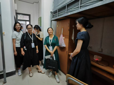 我院执行院长樊燕龙、院党委书记邵莉敏、副院长凌喆、院党委副书记兼纪委书记王铁军、新生班主任和辅导员一行前往新生宿舍,深入了解同学们的报到情况,关心同学们的到校旅程,还悉心询问他们对寝室环境、校园氛围的感受。遇到一些小问题时,他们立即协调解决,力求让每位新生都能安心、顺利地融入大学生活。在与新生们的交流中,老师们特别谈到大学学习的重要性,鼓励大家以兴趣为起点,以专业为依托,培养独立思考和跨文化沟通的能力。他们希望同学们在未来四年里,敢于探索,善于表达,把我院当作梦想的起点。
